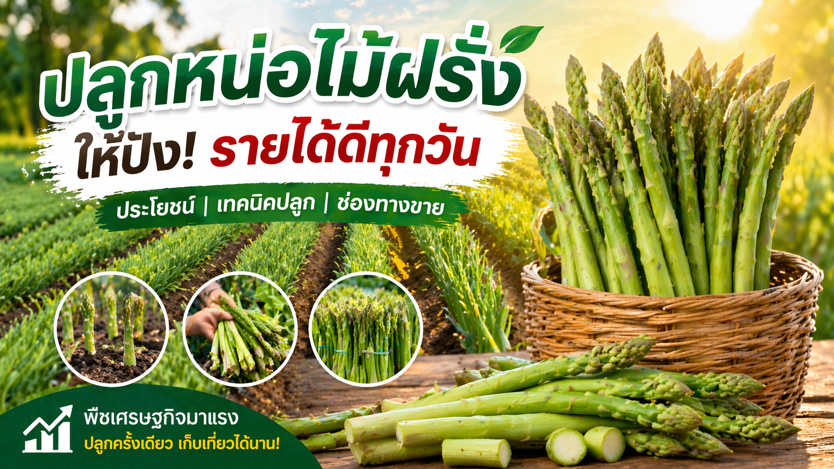 “หน่อไม้ฝรั่ง” เป็นหนึ่งในพืชเศรษฐกิจที่มาแรงในยุคสุขภาพ เพราะไม่เพียงแต่ มีคุณค่าทางโภชนาการสูง แต่ยังเป็นพืชที่สามารถสร้างรายได้ต่อเนื่อง หากวางแผนปลูกและขายอย่างถูกต้อง 🌱 หน่อไม้ฝรั่งคืออะไร? ทำไมถึงน่าปลูก หน่อไม้ฝรั่งเป็นพืชผักที่มีอายุหลายปี (Perennial) ปลูกครั้งเดียว เก็บเกี่ยวได้นาน 8–10 ปี เริ่มเก็บผลผลิตได้ภายใน 4–6 เดือน ตัดขายได้ “เกือบทุกวัน” 👉 จุดเด่น: เป็นพืชที่สร้าง “รายได้ประจำ” ให้เกษตรกร 💚 ประโยชน์ของหน่อไม้ฝรั่ง (ที่ทำให้ขายดี) หน่อไม้ฝรั่งได้รับความนิยมสูงในกลุ่มคนรักสุขภาพ ✔ มีไฟเบอร์สูง ช่วยระบบขับถ่าย✔ มีสารต้านอนุมูลอิสระ✔ มีวิตามิน A, C, E และโฟเลต✔ แคลอรีต่ำ เหมาะกับสายคลีน 👉 จึงเป็นผักที่มี “Demand สูง” ทั้งในและต่างประเทศ 🌾 วิธีปลูกหน่อไม้ฝรั่งให้ได้ผลผลิตดี 1. 📍 เลือกพื้นที่ ดินร่วนปนทราย ระบายน้ำดี ไม่ท่วมขัง มีแหล่งน้ำเพียงพอ 2. 🌿 การเตรียมแปลง ยกร่องสูงประมาณ 30–50 ซม. ใส่ปุ๋ยคอก + ปุ๋ยหมัก ปรับดินให้ร่วนซุย 3. 🌱 การปลูก ใช้ต้นกล้าคุณภาพ ระยะปลูกประมาณ 30 x 30 ซม. ปลูกเป็นแถวเพื่อดูแลง่าย 4. 💧 การดูแล รดน้ำสม่ำเสมอ (สำคัญมาก) ใส่ปุ๋ยทุก 15–30 วัน กำจัดวัชพืช 👉 ยิ่งดูแลดี หน่อจะ “อวบ ยาว และขายได้ราคา” 5. ✂️ การเก็บเกี่ยว เริ่มตัดได้เมื่อหน่อสูง 20–25 ซม. ตัดทุกวันในช่วงฤดูเก็บเกี่ยว 👉 ยิ่งเก็บบ่อย = รายได้ยิ่งต่อเนื่อง 💰 ช่องทางการจัดจำหน่ายหน่อไม้ฝรั่ง 🛒 1. ตลาดสด / ตลาดท้องถิ่น ขายง่าย เข้าถึงลูกค้าเร็ว เหมาะกับเกษตรกรรายย่อย 🏬 2. ซูเปอร์มาร์เก็ต / ห้าง ได้ราคาสูงกว่าตลาดทั่วไป ต้องมีมาตรฐานสินค้า (GAP / Organic) 🍽️ 3. ร้านอาหาร / โรงแรม เป็นลูกค้าประจำ ต้องส่งของสม่ำเสมอ 👉 ช่องทางนี้ “รายได้มั่นคงมาก” 📦 4. ขายออนไลน์ Facebook / Line / Marketplace ขายตรงถึงผู้บริโภค 👉 เพิ่มกำไร ลดพ่อค้าคนกลาง 🌍 5. ส่งออกต่างประเทศ ตลาดหลัก: ญี่ปุ่น ยุโรป ต้องได้มาตรฐานสูง 👉 กำไรสูง แต่ต้องมีระบบจัดการดี 🚀 เทคนิคเพิ่มรายได้จากหน่อไม้ฝรั่ง ✔ คัดเกรดสินค้า (เล็ก/กลาง/ใหญ่)✔ แพ็กสินค้าให้ดูดี✔ ทำแบรนด์ของตัวเอง✔ ปลูกแบบปลอดสาร (Organic) 👉 ช่วยเพิ่มมูลค่าได้หลายเท่า ⚠️ ข้อควรระวัง ต้องมีน้ำเพียงพอ ใช้แรงงานค่อนข้างมาก (ตัดทุกวัน) ต้องรักษาคุณภาพสินค้าให้สดเสมอ 🎯 สรุป หน่อไม้ฝรั่งเป็นพืชเศรษฐกิจที่✔ ปลูกครั้งเดียว เก็บเกี่ยวได้นาน✔ ตลาดต้องการสูง✔ มีช่องทางขายหลากหลาย 👉 เหมาะมากสำหรับเกษตรกรที่ต้องการ “รายได้ต่อเนื่องระยะยาว” Post navigation พืชเศรษฐกิจน่าสนใจ เดือนเมษายน 2569 ปลูกอะไรดีให้ได้กำไร?